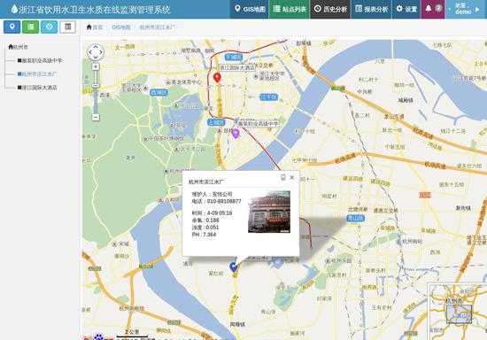 通过浙江卫生监督信息网平台向社会公示在线监测点的水质信息和供水单位的卫生状况。公共浏览者在此平台可查到该地区居民饮用水质量的“每日监测数据”。